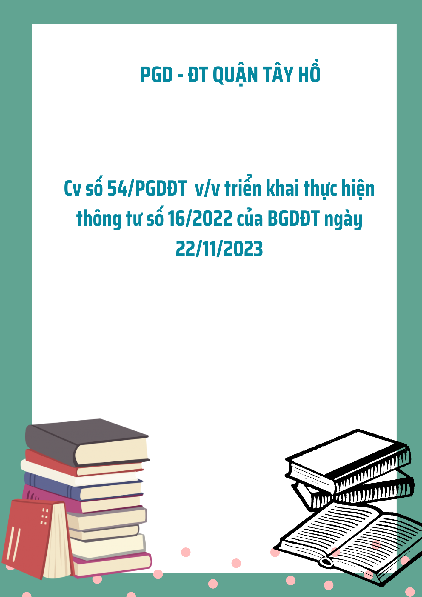 Cv số 54/PGDĐT v/v triển khai thực hiện thông tư số 16/2022 của BGDĐT ngày 22/11/2023